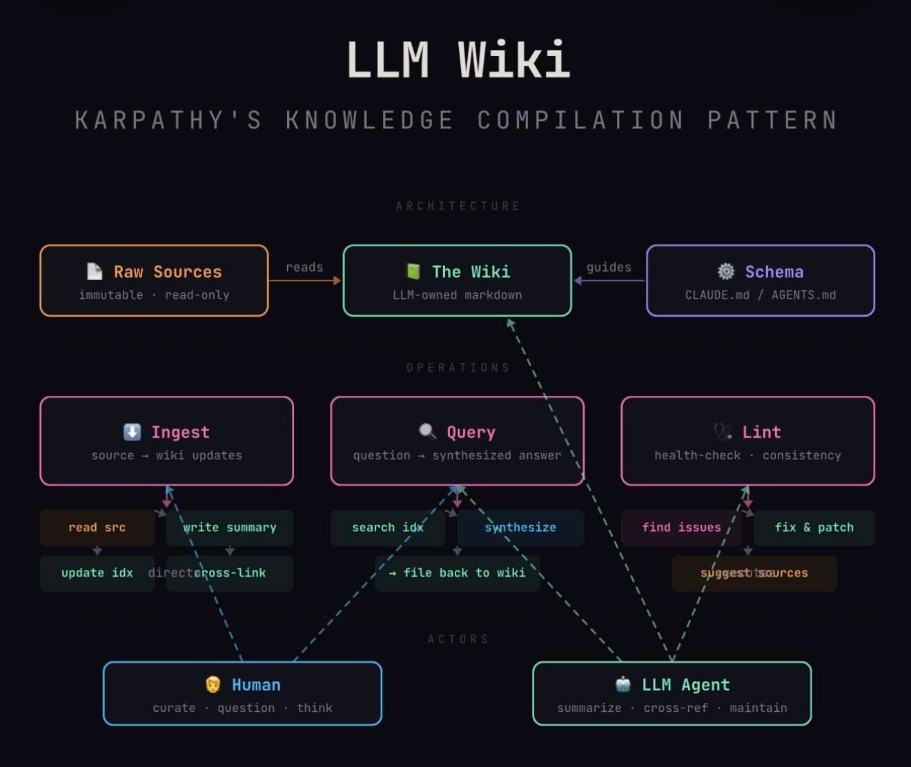 Why it matters: Most people's relationship with LLMs is transactional. You ask, it answers, and nothing persists. Karpathy's system flips that. The LLM doesn't just answer questions, it maintains a living knowledge base that grows with every query. The key insight is that structured Markdown files are indexable enough for mid-scale wikis without vector embeddings, making the whole thing transparent and human-readable. It's the second brain concept, but the LLM does the filing.