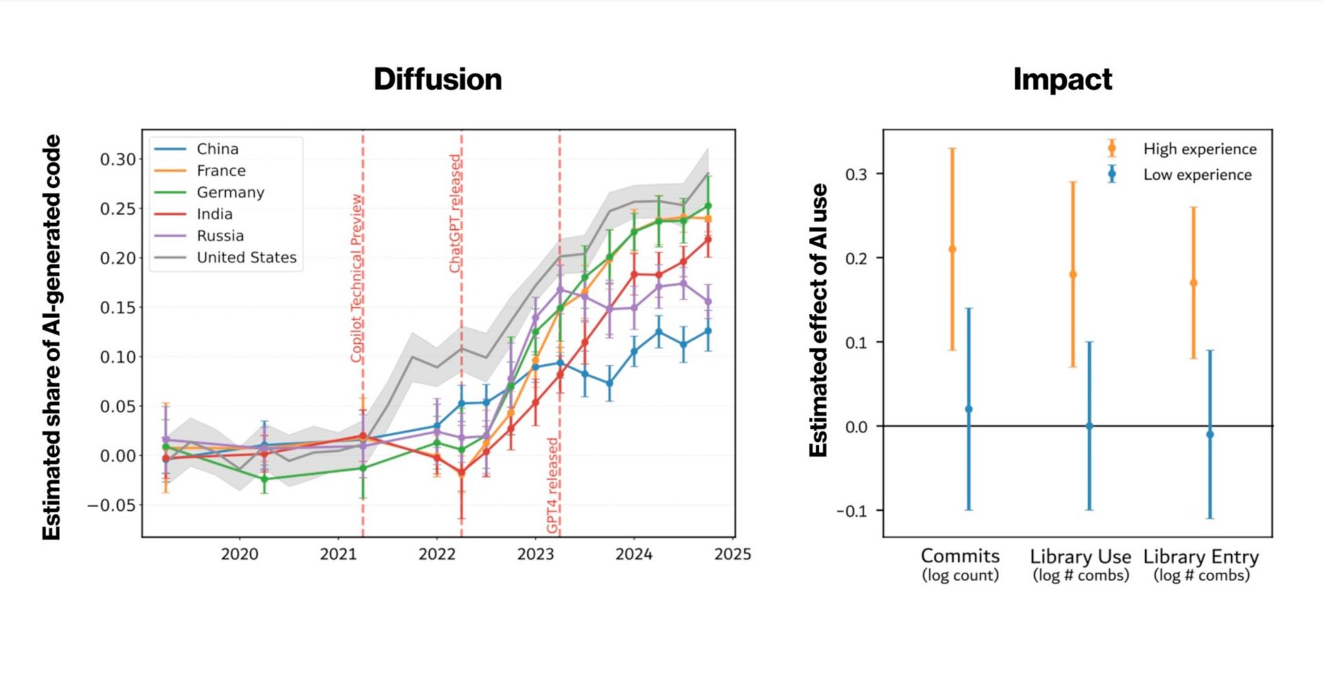 Why it matters: AI coding tools aren't leveling the playing field as hoped. They're widening the gap between junior and senior developers. Newcomers get no productivity boost despite using AI more often. The rapid spread shows AI has become central to software development in just two years, but benefits flow mainly to people who already have experience. This raises tough questions about training the next generation when AI only helps people who already know how to code.