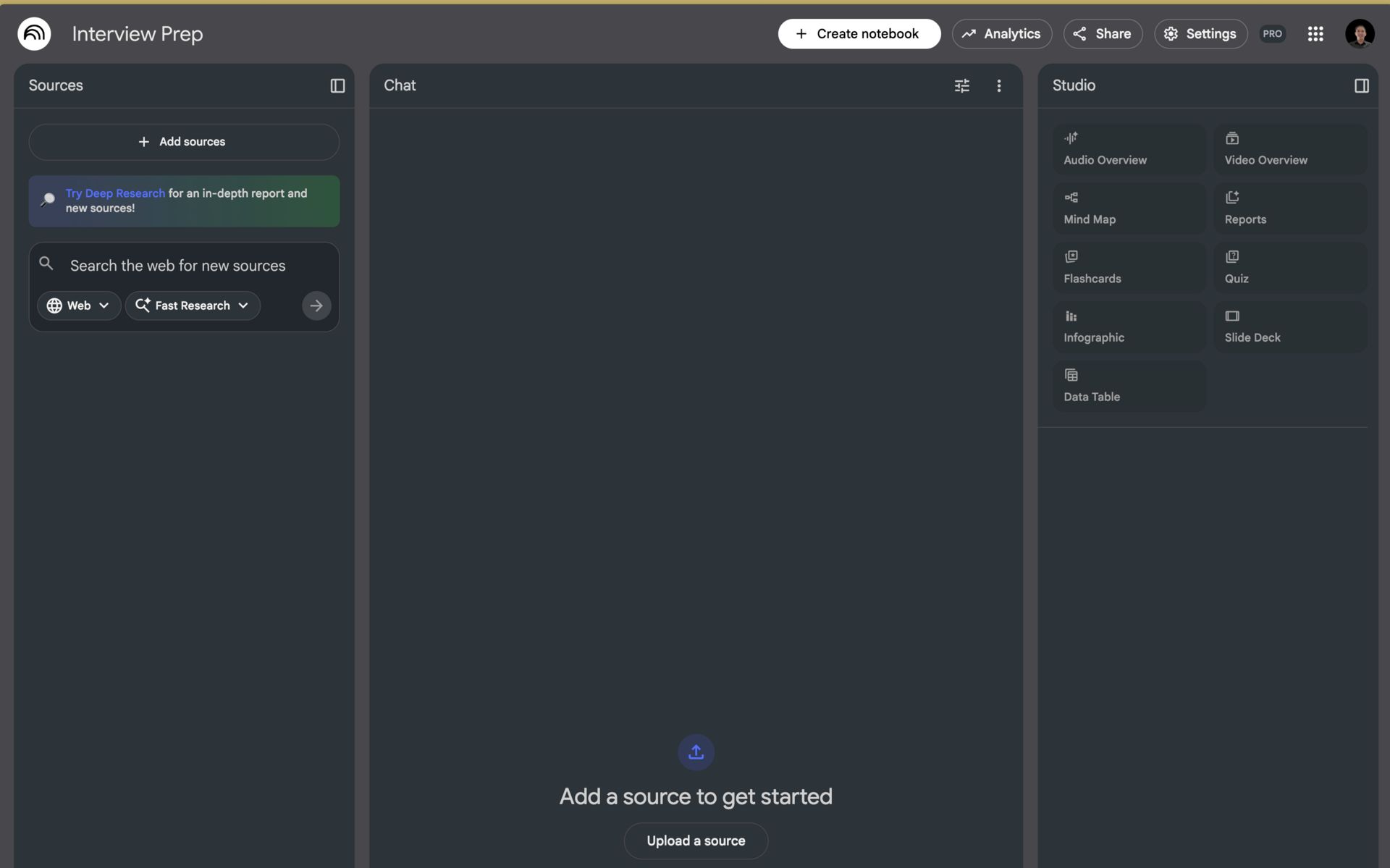 Pro tip: Save your interviewers' LinkedIn profiles as PDFs and upload them to NotebookLM. It will suggest conversation topics, shared interests, and company challenges they care about.